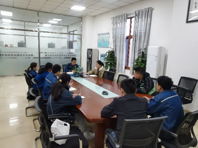 為了解新員工的思想動態(tài)和工作狀態(tài),為新員工搭建交流溝通的平臺,幫助成長,營造一個(gè)坦誠、積極、和諧的工作環(huán)境和工作氛圍,攀藍(lán)鼎生產(chǎn)部于1月27日上午9點(diǎn)在脫硫會議室舉行了新員工面談會,參加此次會議的有生產(chǎn)部部長崔偉、副部長王森林、人力行政專員賈媛以及7名新員工,面談會由賈媛主持。