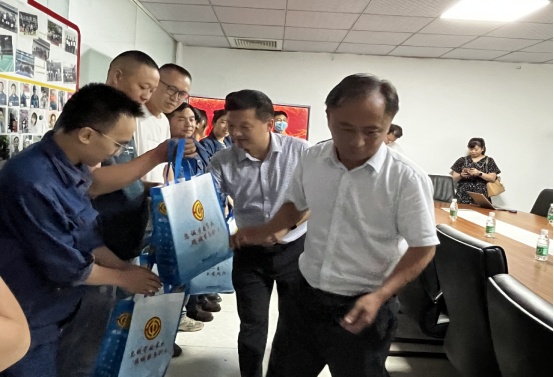 慰問現(xiàn)場(chǎng),劉鑫云主席親切問候了奮戰(zhàn)在高溫一線的員工并送上了慰問品。